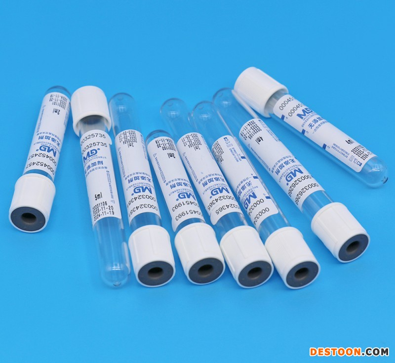 无添加剂的干燥真空管,采血管内壁均匀涂有防止挂壁的药剂(硅油)。它利用血液自然凝固的原理使血液凝固,等血清自然析出后,离心使用。主要用于血清生化(肝功、肾功、心肌酶、淀粉酶等)、电解质(血清钾、钠、氯、钙、磷等)、甲状腺功能、药物检测、艾滋病检测、肿瘤标志物、血清免疫学等。