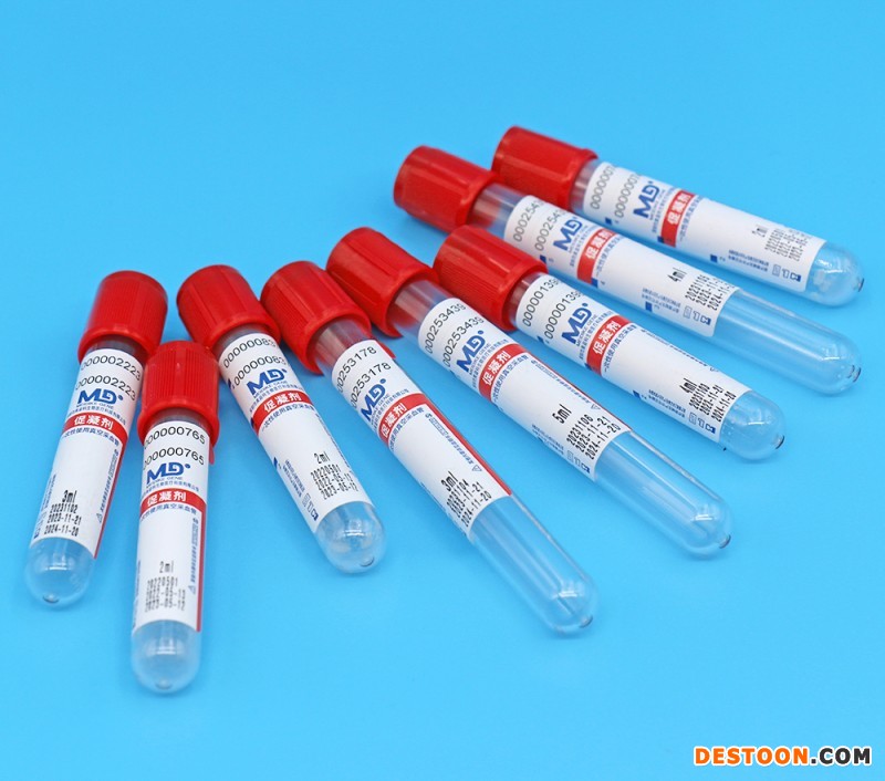 产品说明:采血管内璧均匀涂有防止挂璧的硅油,同时添加了促凝剂。促凝剂可激活纤维蛋白酶,使可溶性纤维蛋白变为不可溶的纤维蛋白多聚体,进而形成稳定的纤维蛋白凝块。快速血清管可在5分钟内使采集的血液凝固,适用于急诊血清系列化试验。